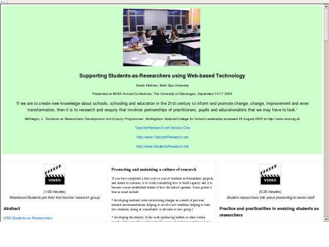 This collection is created as part of a presentation about Students as Researchers at the BERA Annual Conference, 2005.
