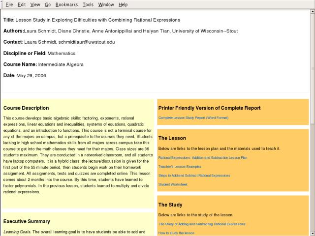 The lesson reviewed addition and subtraction of fractions, demonstrated addition and subtraction of simple rational expressions, and worked up to difficult examples. The lesson began with three examples of rational numbers, one with common denominators and two with un-like denominators, followed by rational expressions with common denominators.
