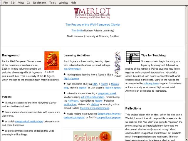 In this gallery you will find a selection of Snapshots that illustrate good practices in creating Snapshots. As you design your own Snapshot, review the examples to learn how these authors 'told their story' using good writing for the Web techniques.Research shows that when reading on the Web, readers scan the page. Few if any, read word for word. Knowing this, the authors of these example Snapshots gave the reader the highlights of the story; they refer the reader to other sites, documents, or resources for more in-depth learning. They "chunk" the information under six standard headings and keep their stories brief, but engaging. As you read, ask yourself: What did the author highlight? How did the author include images, links to documents or URLS that illustrated their point, add interest, or brighten up the page? How did the author respond to the prompts found in the MERLOT Snapshot template? How did they condense materials to meet good writing for the web? Knowing the answers to these questions will help you design an easy to read, Web-ready Snapshot.