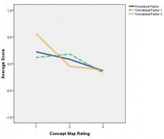 Evidence of Student Learning & Methods of Analysis Student understanding of the sampling distribution was assessed using concept mapping projects (Lipson, 2003). Students were given a suggested list of key terms and asked to arrange them into a map that shows relationships and structure. The concept maps were scored using a 3 point rubric. Student conceptual and procedural understanding of inferential methods was assessed using corresponding exam questions. These questions appeared on the 3rd midterm exam of the course, the 4th midterm exam, and the final exam. Factor analysis was used to convert the scores that students received on each of several exam questions into a single procedural and two conceptual numeric scores. Multivariate analysis of variance was used to test if the average conceptual and procedural scores differ significantly between those scoring a level 1, 2, and 3 on the concept mapping activities.