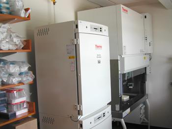 Karen Chernoff observing GFP labeled C. elegans after treatment with RNAi
