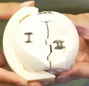 Improved 3D version of Shape Game Over Devember 2003 and January 2004 we were able to design and have produced plastic, three-dimensional version of the game. That version was used in the Spring 2004 7.014 class, as well as in the Fall 2004 Voluntary Lab. The response from students in the latter course was very positive. The correct way to assemble complexes out of the three-dimensional pieces is not as immediately obvious as was the case for the prototype game pieces. This seems to have resulted in students feeling that they got more out of the experience.