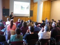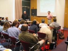 Mary Lidstrom from the University of Washington. Mary gave a talk entitled, "Biology at the interface: Teaching biology to engineers" on April 15th, 2005. Mary described a biology elective class for engineers that she has been teaching for several years. Mary's main motivation resides in the idea that biologists learn biology using the motivation of "what", but engineers study biology with the motivation of "how." Her class incorporates a number of student-initiated learning mechanisms such as problem solving and group activities. The classes are now becoming more and more focused for specific engineering major groups such as electrical, mechanical, and chemical engineers. She described how each group tackles biological problems differently and summarized the benefits each group attains from a non-lecture based format.