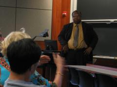 Michael Summers from the University of Maryland, Baltimore County. Mike gave a talk entitled, "Beating the odds: Increasing diversity in the biomedical sciences." Mike spoke about his efforts in the ceration of a Howard Hughes Medical Institute Scholar's Program. This program main focus is to increase the number of minority students who attend Ph.D. or M.D./Ph.D. programs. The students engage in research experiences as early as their first year of school and are encouraged to work with reseach faculty throughout their undergraduate career. Mike discussed the benefits and challenges associated with implementing this program, and talked about how other universities could establish similar programs using UMBC as a model.