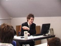 Transcript of extracts from the movie. This video was taken at the Teacher Development Day for Westwood St. Thomas School in Salisbury on 6 January 2003. Karen Collins (later Karen Riding) taught at this school before moving to Bishop Wordsworth's School also in Salisbury. By an unexpected turn of events, Shane and Alex also moved on to Bishop Wordsworth's School where they later joined forces to become research mentors for Year 7 students. 6 January 2003 Teacher Development Day relating to working with Gifted and Talented Students Karen Collins: introduces the idea of working with students in the Teacher Research Day It's really time to get inside their heads and what can they tell us that is extra to what we actually think or is what we have written down. What exactly do they think? Certainly when I sat down with them for 10 or 15 minutes, a lot came out from that discussion, a lot of things which I had bi-passed and a couple of things which I think I had got wrong. We are going to be working with them and this is really an exchange of information so what do they think of the six areas we are looking at and what do we think? Do they both match up? Shane: explains the video that teachers are going to watch a video taken by students of their lesson. We had just started our coursework on photosynthesis and we were collecting our results and information for it (just before teachers watch the students' video of a lesson they were participating in). Karen: co-presents with Sarah at Becta's Action Research Conference (2 March 2005) Sarah has made a vital point when she says it is about working in schools with practitioners and Sarah working with us as a university academic. So it is not just one side of the coin. It is actually both sides working together. There is no way I could have come to the understanding I have got today about research if I had not had that contact with the University as a teacher researcher. I think that is crucial.