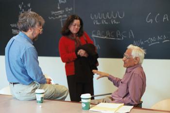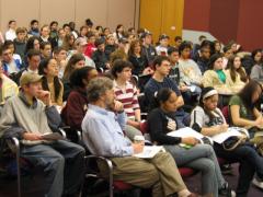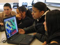 "Science Field Trip to MIT" High School Outreach Program effort led by Mandana Sassanfar On March 24, 2003, during Spring Break at MIT, we organized a "Science Field Trip to MIT" that involved approximately 90 students from four Boston area high schools and their teachers. Highlights of the day included lectures by Professor Eric Lander, director of the Broad Institute and Susan Lindquist, director of the Whitehead Institute. After the lectures, students broke out into smaller group activities such as: a discussion with Professor Gobind Khorana, 1966 Nobel Laureate, about cracking the genetic code, and an account of his personal journey from his native India to America; an exercise on protein structure and function adapted from our Swiss Protein Viewer project; and a lab exercise based on microscopic observation of Zebrafish embryos. The several hundred embryos at different stages of development were generously provided by the Sive and Hopkins labs. The protein structure-function exercise was done in the TEAL room which allowed students to each have a laptop computer (see picture). Due to the high demand in 2004, we held lectures and hands-on activities on two successive days allowing over 200 students from 9 schools to participate. Professor Hazel Sive gave a lecture about vertebrate development, and Professor Jonathan King gave a lecture on protein structure. Students were then able to study and manipulate the structure of the hemoglobin and porin proteins on laptop computers using Swiss Protein Viewer, and observe wild type and mutant Zebrafish embryo at various stages of development under the microscope. The high school field trip was run again in March of 2005. AP and honors biology students from Lawerence, Hudson, Peabody, Newburyport, CRLS, and Arlington attended the event. The students participated in 3 hour-long activities. These programs involved using the Deep View protein structure program, observing zebrafish development, and using Lego kits to model meiosis. In addition to these activities, students were able to visit several laboratories throughout the biology department, including the electron microscope facility, a C. elegans lab, a drosophilia lab, and a yeast genetics lab. The field trip was run again in March of 2006 and limited to students concurrently taking AP biology in the greater Boston area. The high school students again participated in lectures and laboratories, but were the first students ever to use the new TEALSim PDBviewer developed here at MIT. The students enjoyed using the software and their teachers hoped to try using it in their schools.