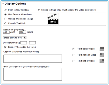 Video Size Press Start to Play vs. Autoplay Duration Display Title under the video Caption Brief Description of your Video |